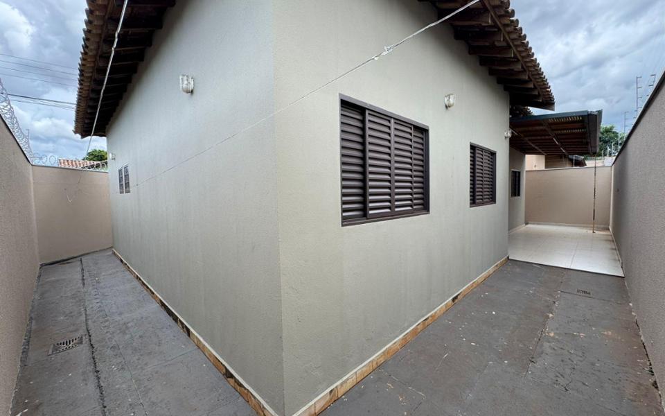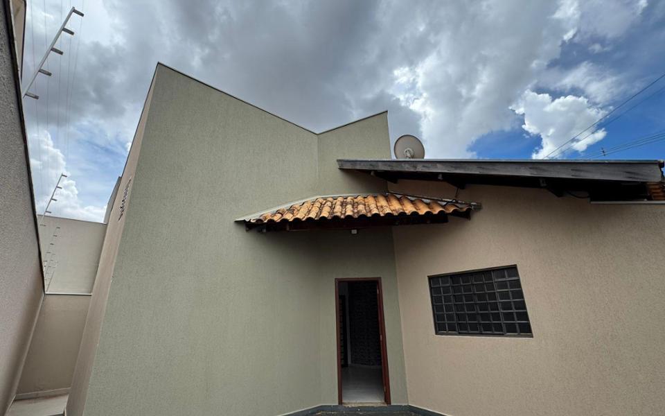 A casa possui 3 quartos, sendo uma suíte.